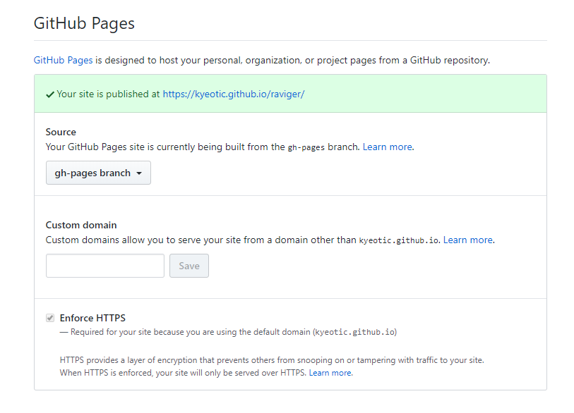 Finally, enable GitHub pages from your repository **settings **page by selecting gh-pages branch on the Source dropdown.